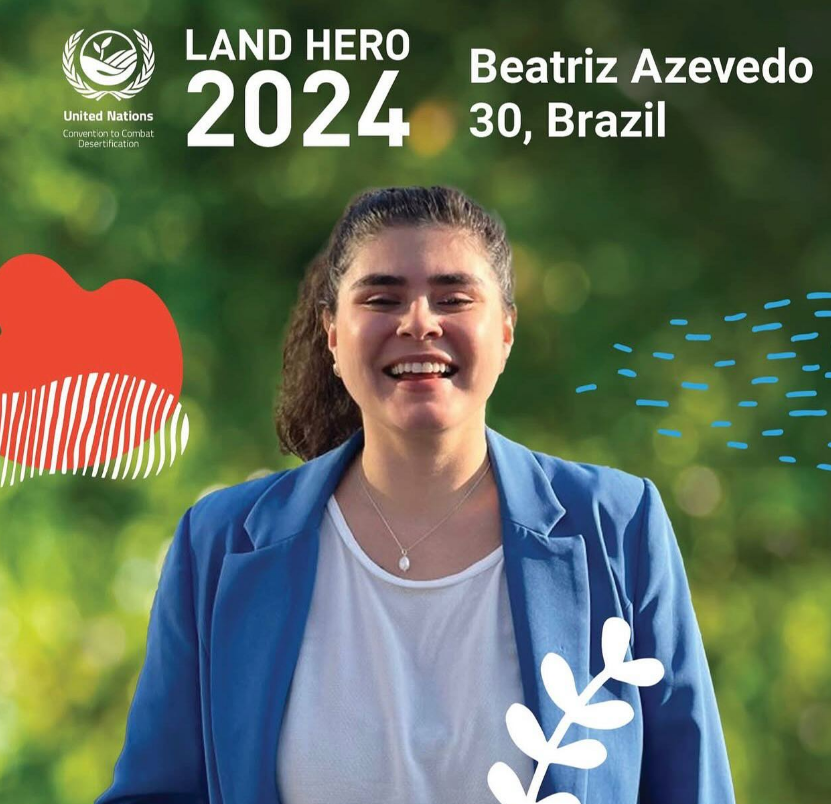 Em um estado caracterizado por sol forte, secas prolongadas e desafios, o Ceará tem se destacado como um local de resistência, inovação e combate. Entre as vozes que atualmente ressoam encontra-se a advogada e ativista Beatriz Azevedo que, aos 31 anos, foi a única brasileira a receber o prêmio “Land Hero” (heróis da terra, em tradução livre) – título da UNCCD, um reconhecimento da Organização das Nações Unidas (ONU), pelo trabalho em defensoria ambiental.